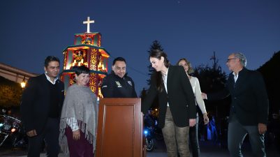 La titular de la Secretaría de Turismo del estado de Querétaro (SECTUR), Adriana Vega Vázquez Mellado, encabezó la ceremonia de inauguración del tradicional Altar de Muertos Monumental, que año con año se coloca en Plaza de Armas, y que, en esta edición está dedicado a la memoria de 13 policías estatales.