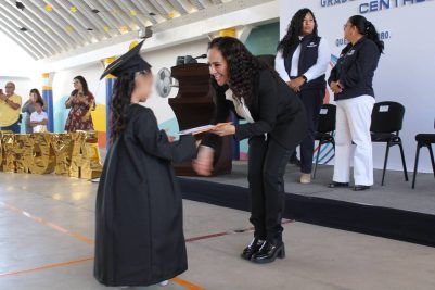 La directora general del DIF Municipal, Tania Paola Ruiz Castro, acompañó a niñas y niños en la ceremonia de clausura del ciclo escolar 2022-2025 en los Centros de Día “Meni” y “Njhöya”, donde se celebró el cierre de una etapa para las y los pequeños.