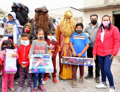 La presidenta del Sistema Municipal DIF Corregidora, Karina Antuñano Torres, en compañía del presidente municipal, Roberto Sosa Pichardo, hicieron entrega de juguetes a niñas y niños con motivo al Día del Reyes en todo el municipio.