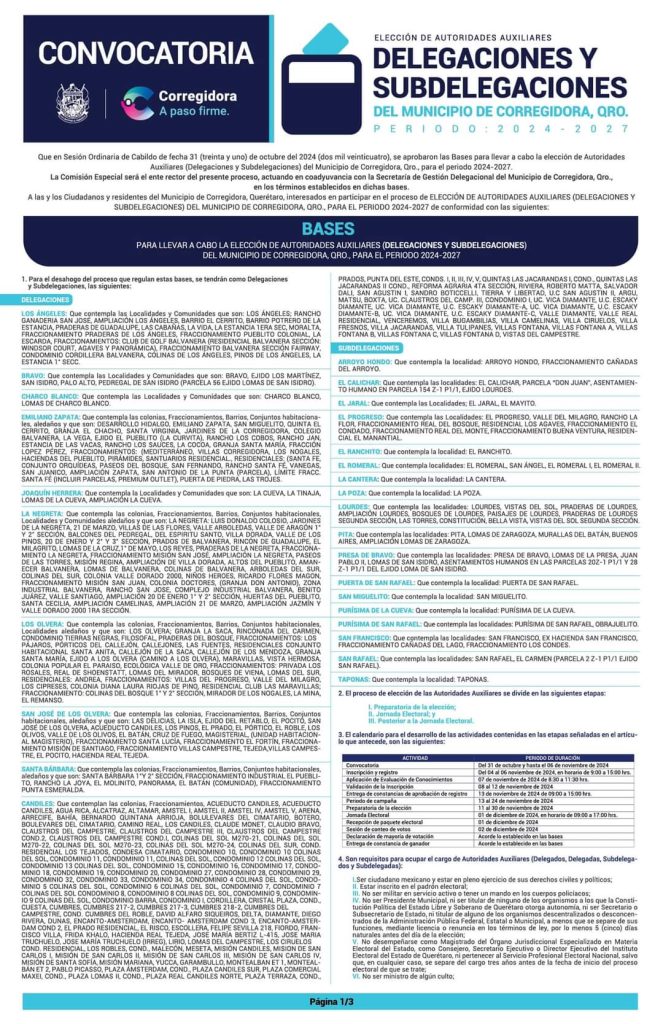 En sesión ordinaria de Cabildo, se aprobó por unanimidad la convocatoria y las bases para la elección de delegados, delegadas, subdelegados y subdelegadas del municipio de Corregidora.