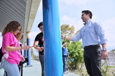 El presidente municipal de Querétaro, Felifer Macías, encabezó las acciones del programa «Rescate de Espacios de Uso Común» en la Escuela Telesecundaria Emiliano Zapata, ubicada en Puerto de Aguirre, Delegación Santa Rosa Jáuregui, con el objetivo de recuperar y dignificar espacios públicos y escolares en colonias y comunidades para el beneficio de las familias, con el respaldo y la participación activa de jóvenes voluntarios comprometidos con su entorno.