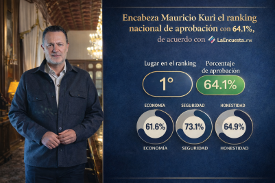 Querétaro se posicionó en el primer lugar nacional de aprobación ciudadana entre gobernadores, de acuerdo con el estudio Desempeño, percepción y aprobación: el balance de las gubernaturas, publicado el 18 de febrero de 2026. El gobernador Mauricio Kuri registró 64.1% de aprobación, el porcentaje más alto del país según el ranking general.