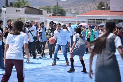 El secretario de Obras Públicas, Francisco Villegas Solis, informó sobre la construcción de la nueva cancha deportiva en esta institución, con una inversión de 2.4 millones de pesos. La obra contempló 665 metros cuadrados de superficie con recubrimiento acrílico, 61 metros cuadrados de andador, 106 metros de cercado perimetral, 28 metros de barandal, así como la instalación de porterías, tableros de básquetbol, postes y red para voleibol.
