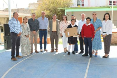Como parte del programa estatal “Contigo en la Escuela”, la secretaria de Educación del Estado de Querétaro (SEDEQ), Martha Soto, encabezó la entrega de equipo de cómputo en las escuelas primarias rurales “Estefanía Castañeda”, de turno matutino, y “Constituyentes”, del turno vespertino, en la comunidad de San Rafael.