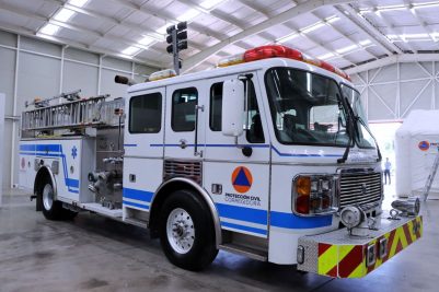 Se trata de un camión americano que cuenta con torre de iluminación a control remoto, 3 escaleras de 10, 16 y 28 pies; 4 equipos de respiración autónoma, equipos de rescate vertical y acuático, canastilla para rescate en alturas, sistema de espuma y una bomba de agua con capacidad de al menos 1,200 galones por minuto, lo que permitirá hacer frente a incendios de gran magnitud.