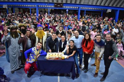 Durante este evento celebrado en la Unidad Deportiva El Pueblito, las autoridades convivieron con los niños y festejaron en un ambiente familiar en donde contaron con rifas, recibieron sus regalos y disfrutaron del show del payaso Bobatín, así como de la presencia de los Reyes Magos con quienes además se pudieron tomar la foto y concluyeron partiendo la tradicional rosca.