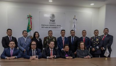 En el encuentro participaron la Mtra. María de la Luz Mijangos Borja, Fiscal Especializada en Materia de Combate a la Corrupción; el Mtro. David Boone de la Garza, Fiscal Especializado de Control Regional; el Mtro. Javier Rodríguez Uribe, Fiscal Federal del Estado de Querétaro; el Lic. Oswaldo Felipe Zapata Becerra, Jefe de la Policía Federal Ministerial en Querétaro; la Mtra. Eréndira Liliana Sánchez Martínez, suplente de la Coordinación Estatal de Servicios Periciales; el Mtro. Daniel Alejandro Acosta Aguirre, titular de la Unidad Especializada en el Sistema de Control Regional; el Mtro. Sabino García Cruz, titular de la Unidad de Investigación y Litigación en Querétaro; el Mtro. Omar Cruz Juárez, titular de la Unidad de CS; Luis Alberto González Hernández, Coordinador Regional Centro; el Secretario de Gobierno Eric Gudiño, General José Guillermo Lira, representante de la Zona Militar; así como el Lic. Iován Elías, Secretario de Seguridad Ciudadana y el General Alfredo Salgado, de la Guardia Nacional en Querétaro.