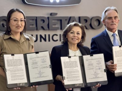 Esta mañana, el Municipio de Querétaro, representado por la presidenta del Sistema Municipal DIF, Adriana Olvera de Macías, y la secretaria de Planeación y Participación Ciudadana, Beatriz Marmolejo Rojas, firmó un convenio de colaboración con el Colegio de Notarios del estado.