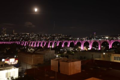 En el marco del Día Internacional de la Lucha contra el Cáncer de Mama, que se conmemora el 19 de octubre, el presidente municipal Felifer Macías, en compañía de la presidenta del Patronato del Sistema Municipal DIF, Adriana Olvera de Macías, llevó a cabo el encendido de los Arcos y de la fachada del Centro Cívico de Querétaro en color rosa, con el propósito de concientizar a las mujeres sobre la importancia de la autoexploración para detectar a tiempo este tipo de cáncer.