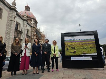La exposición fotográfica “La Biodiversidad ante el Cambio Climático: huellas en la Unión Europea y México” fue inaugurada en la Plazuela Mariano de las Casas, por el embajador de la Unión Europea (UE) en México, Gautier Mignot, la secretaria de Cultura del estado de Querétaro, Marcela Herbert Pesquera, y la representante del Gobierno de Querétaro en la Ciudad de México, Paloma Palacios González, con el fin de concientizar al público asistente sobre los impactos que el cambio climático tiene en la biodiversidad.