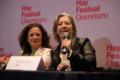 «Quiero destacar la importancia de que en esta última edición el Hay Festival se centró o centró una parte importante de su trabajo en las delegaciones y en barrios muy particulares y muy importantes en donde el acercar a los chicos, a los jóvenes, no solamente a la literatura sino a las problemáticas de la vida y a las condiciones de la vida a través de la literatura, de la ciencia, del arte. Creo que me parece un factor determinante para repensarnos y replantearnos el mundo y eso es lo que hace el Hay Festival, eso es lo que hizo una vez más en estos espacios del municipio de Querétaro», comentó en la rueda de prensa donde también estuvo presente Yara Beltrán, Coordinadora de Enlace y Seguimiento de la Secretaría de Turismo del Estado.
