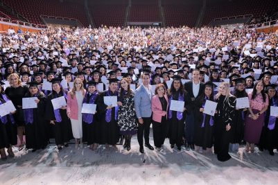 El presidente municipal de Querétaro, Felifer Macías, en compañía de la presidenta del Patronato del Sistema Municipal DIF, Adriana Olvera de Macías, encabezó la ceremonia de graduación de la generación 2021-2025, de la Universidad de las Mujeres, donde 403 mujeres concluyeron sus estudios a nivel bachillerato, licenciatura y maestría, y se convirtieron en un orgullo para sus familias y un ejemplo de superación para toda la ciudad.
