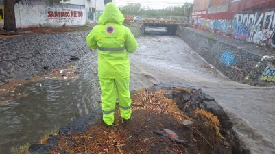 Durante la tarde, noche y madrugada, personal de Protección Civil, Seguridad Pública Municipal, Servicios Públicos, Obras Públicas y de las Delegaciones, recorren los puntos susceptibles de afectaciones por lluvias y supervisan el funcionamiento de drenes y demás infraestructura pluvial, de tal manera que al momento sólo se reportan escurrimientos de material sólido en la calzada de Los Arcos, encharcamientos a nivel de banqueta en la avenida Belén y Sombrerete, así como retorno de agua del drenaje sanitario agua en algunas patios de viviendas en la colonia Fundadores, afortunadamente sin registrar afectaciones.