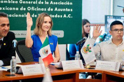 Durante la asamblea general de la Asociación Mexicana de Oficinas de Asuntos Internacionales de los Estados (AMAIE), realizada en la Secretaría de Relaciones Exteriores (SRE), la representante del Poder Ejecutivo del Estado de Querétaro en la Ciudad de México, Paloma Palacios, fue elegida por unanimidad como presidenta de la AMAIE para el periodo 2024-2025.