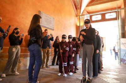 Durante la ceremonia, se realizó un recorrido sensorial en el que participaron niñas y niños con discapacidad, acompañados por sus tutores, así como un taller de escritura en braille. El objetivo fue ofrecer una experiencia que estimule los sentidos y permita conocer el arte desde distintas perspectivas.