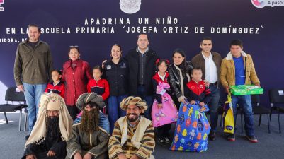 El presidente municipal de Corregidora, Chepe Guerrero, junto con las y los miembros de su Gabinete y regidores, entregaron juguetes y ropa a niñas y niños de la escuela primaria Josefa Ortiz de Domínguez en la comunidad de El Progreso, con quienes compartieron la tradicional Rosca de Reyes, como parte del programa “Apadrina un Niño”, organizado por segundo año consecutivo por parte del Sistema Municipal DIF Corregidora.