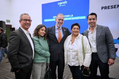 Felifer Macías, asistió a la presentación de la Estrategia para la Aceleración del Empleo en Querétaro, encabezada por el secretario de Desarrollo Económico de Gobierno del Estado, Marco Antonio del Prete Tercero, con la participación de líderes de cámaras empresariales, colegios, representantes del sector comercio, mercados y tianguis, así como del micro y pequeño comercio y rectores de universidades.