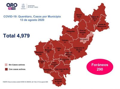 En la entidad se tiene un registro acumulado de cuatro mil 979 casos de COVID-19; 44% son mujeres y 56% son hombres.