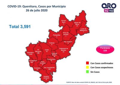 En la entidad se tiene un registro acumulado de tres mil 591 casos de COVID-19; 43% son mujeres y 57% son hombres.