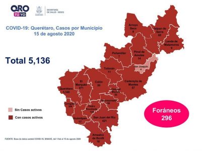 En el estado se suman 96 casos de COVID-19; se trata de 43 mujeres, de 20, 21, dos de 22, 25, dos de 26, 27, 28, 30, 31, tres de 34, tres de 36, tres de 38, 39, 41, 42, 43, 45, dos de 46, dos de 50, dos de 51, 52, 53, 54, 55, 57, 58, 59, 61, 65, 72, 75 y 76 años, y 53 hombres, de 2, 19, dos de 20, 25, dos de 27, 29, dos de 31, dos de 32, 33, cuatro de 35, dos de 36, 37, 39, dos de 40, 42, 43, 44, 45, tres de 47, tres de 48, 49, cuatro de 50, dos de 52, 53, 57, dos de 58, 63, dos de 65, 67, dos de 71, 74, 76 y 80 años.