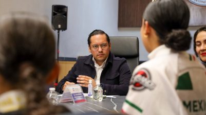 En el encuentro también participaron: la secretaria de Cultura y Tradiciones, Schoenstatt Cabrera Ramírez; el Jefe de Gabinete, Carlos Contreras López; la secretaria Particular, Gabriela García Díaz y el director del Instituto Municipal del Deporte, Luis Antonio Gómez Ugalde.