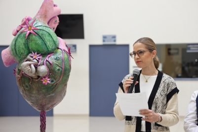 Cabe mencionar que esta obra de arte fue creada por la artista queretana María del Carmen Morquecho Saldaña, y es una pieza escultórica que representa el corazón de una persona trasplantada, junto a cactáceas, flores, ojos y un feto que simbolizan la capacidad de adaptación, belleza, esperanza y una vida nueva.
