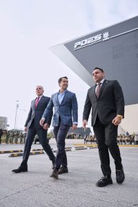 El presidente municipal de Querétaro, Felifer Macías, acompañó al secretario de Seguridad Ciudadana, Iován Elías Pérez Hernández, y el Gral. De Brigada de E.M., Vinicio Perea Alcaraz, Comandante de la Décimo Séptima Zona Milita, a los honores a la bandera que se llevaron en las instalaciones de Rhino en la Secretaría de Seguridad Ciudadana.