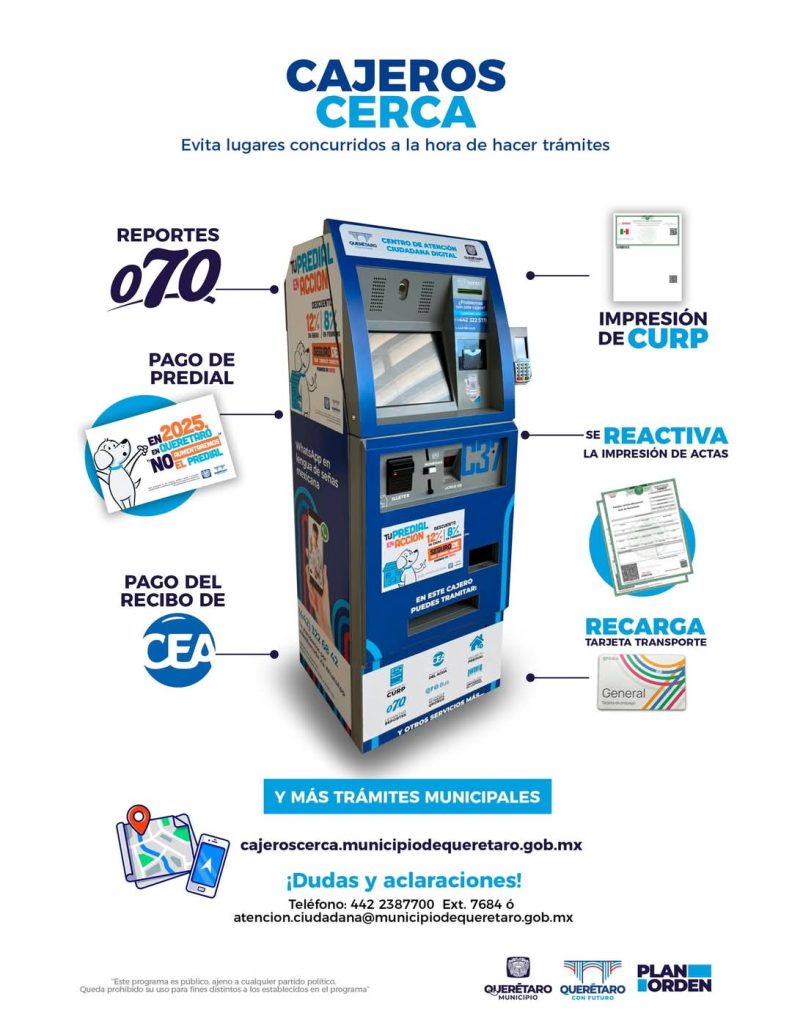 Las autoridades del Municipio de Querétaro anunciaron esta mañana que a partir de la próxima semana se reanudará el servicio de impresión de actas de nacimiento y matrimonio en los 60 cajeros inteligentes distribuidos estratégicamente en la capital.