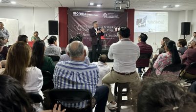 Santiago Nieto Castillo participó en una conversación sobre la defensa de la soberanía económica en el marco de la revisión del Tratado entre México, Estados Unidos y Canadá (T-MEC), actividad realizada a invitación de la Secretaría de Educación, Formación y Capacitación Política de Morena en el estado de Querétaro.