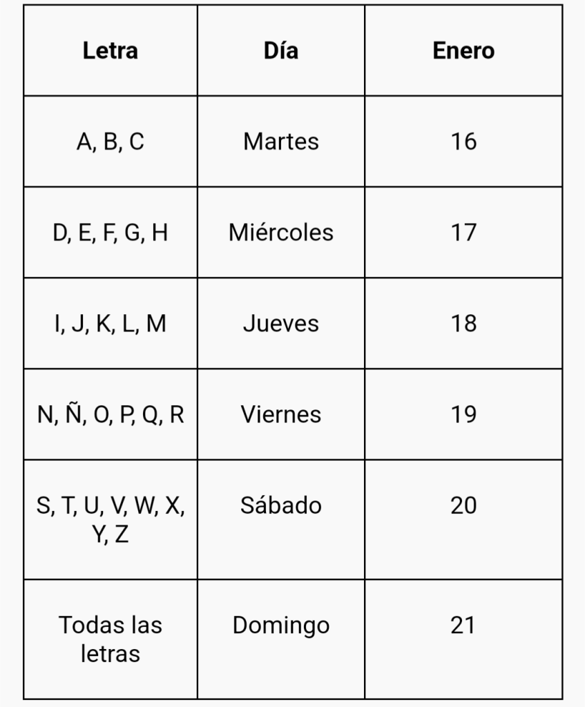 Ariadna Montiel precisó que, para conocer fecha y ubicación de los Módulos de Bienestar, está disponible la página oficial de la Secretaría de Bienestar gob.mx/bienestar; para brindar mejor atención, el registro se realiza de acuerdo con la letra inicial del primer apellido de la persona adulta mayor, bajo el siguiente calendario: