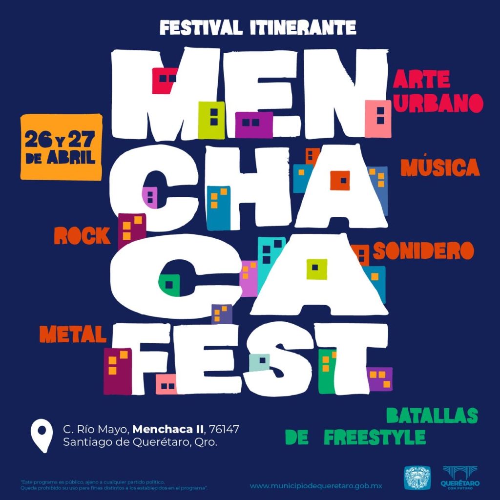 El programa iniciará con el “Menchaca Fest”, que se llevará a cabo los días 26 y 27 de abril en la calle Río Mayo, en Menchaca II. Este festival reunirá a más de 40 artistas locales y nacionales, y ofrecerá actividades como arte urbano, batallas de freestyle, así como música de géneros como rock, sonidero y metal.