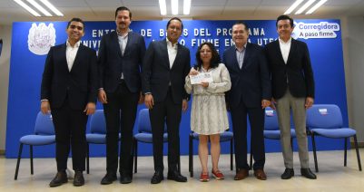 El rector de la Universidad Tecnológica de Querétaro (UTEQ), Luis Fernando Pantoja Amaro, encabezó la entrega de becas del programa «Universitario a Paso Firme» a más de 60 estudiantes originarios del municipio de Corregidora que actualmente cursan sus estudios en esta institución, con un apoyo económico de dos mil quinientos pesos de manera semestral, a fin de atender diversas necesidades estudiantiles y contribuir al bienestar de sus familias, aliviando en parte la economía del hogar.